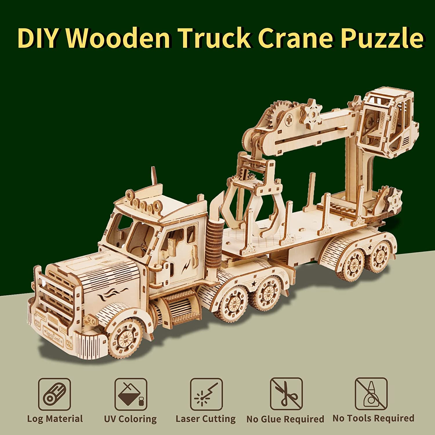 Build your way to adventure with the Truck Crane Puzzle - an heirloom wood craft kit inviting explorers of all ages on a journey of mechanical wonders.