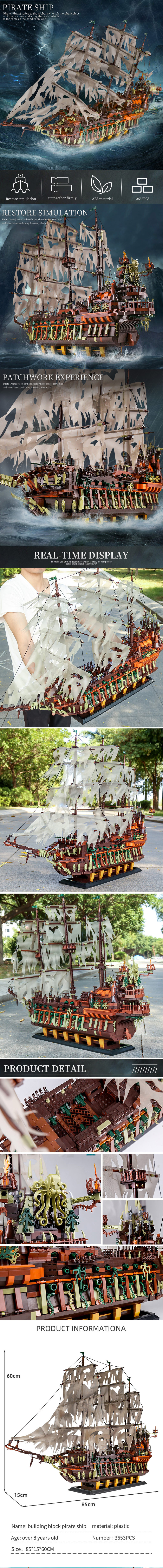 Pirate Ship Building Blocks Flying Dutchmans Boat Construction Kit for Adults Kids Bricks Toys