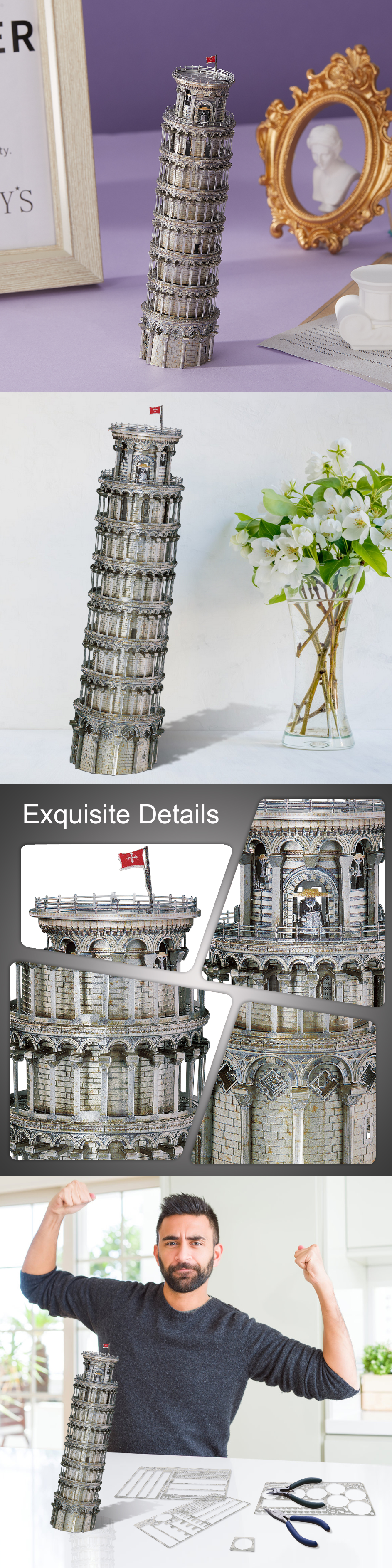 3D Metal Puzzle-Leaning Tower of Pisa Model Building Kit Jigsaw DIY Toys for Adult