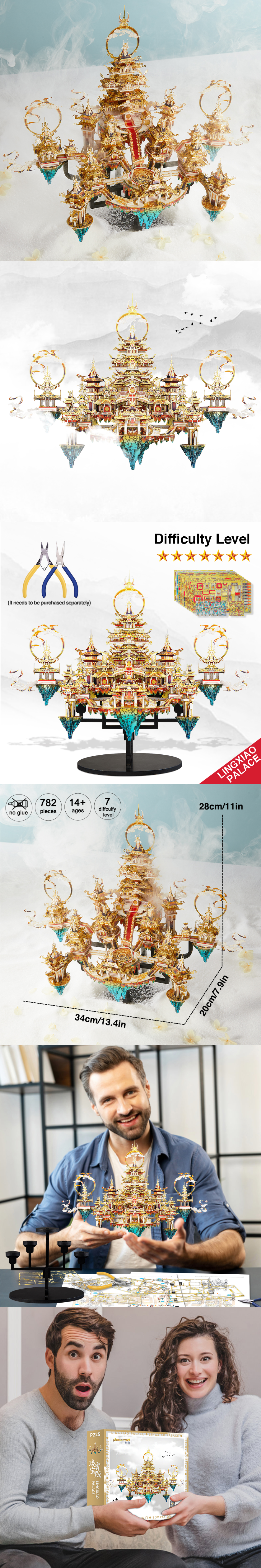 3D Metal Puzzle Lingxiao Palace Assembly Model Kits for Kids Adult Jigsaw DIY Set for Brain Teaser Home Decoration