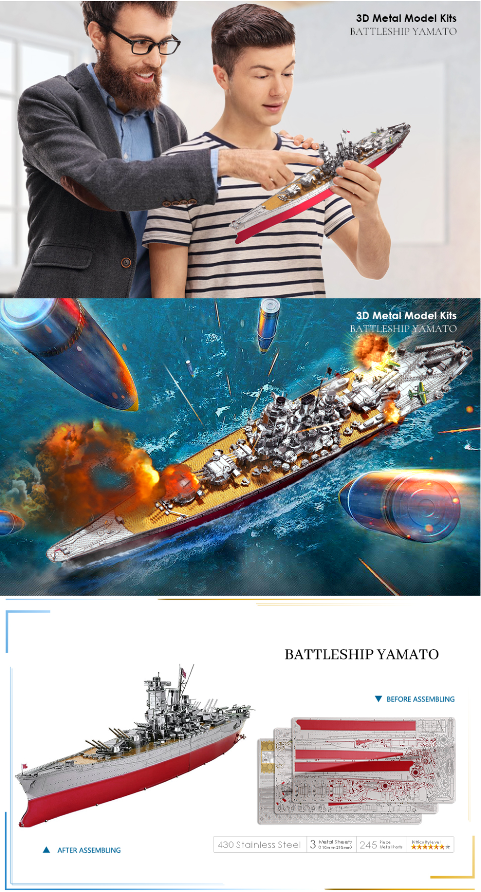 3D Metal Puzzle Model Building Kits - Battleship Yamat Battleship Jigsaw Toy ,Christmas Birthday Gifts for Adults Kids