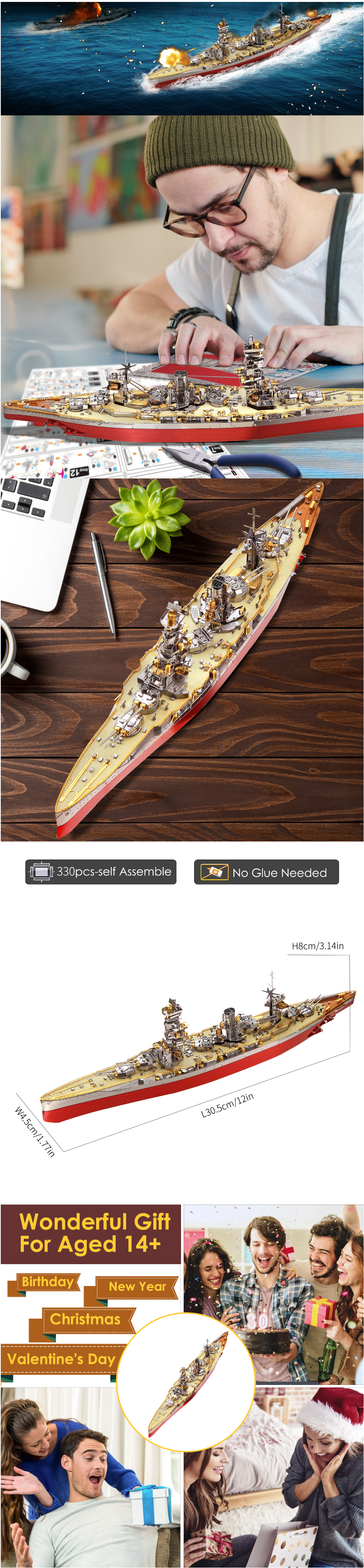 3D Metal Puzzle Model Building Kits-Fuso Battleship DIY Jigsaw Toy ,Christmas Birthday Gifts for Adults Kids