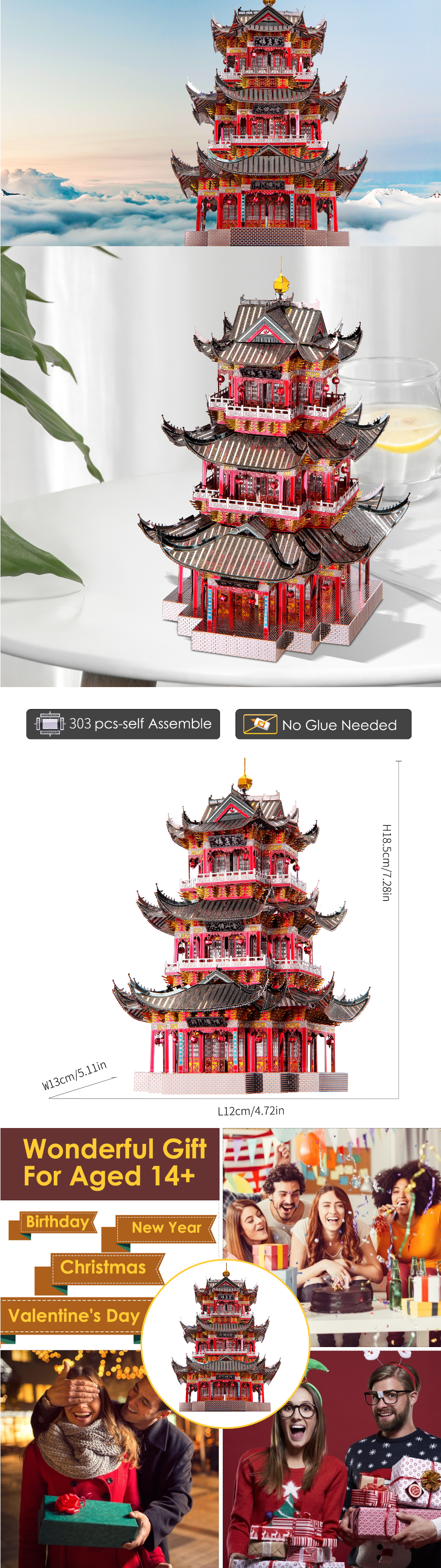 3D Metal Puzzle Model Building Kits,Juyuan Tower DIY Assemble Jigsaw Toy ,Christmas Birthday Gifts for Adults Kids