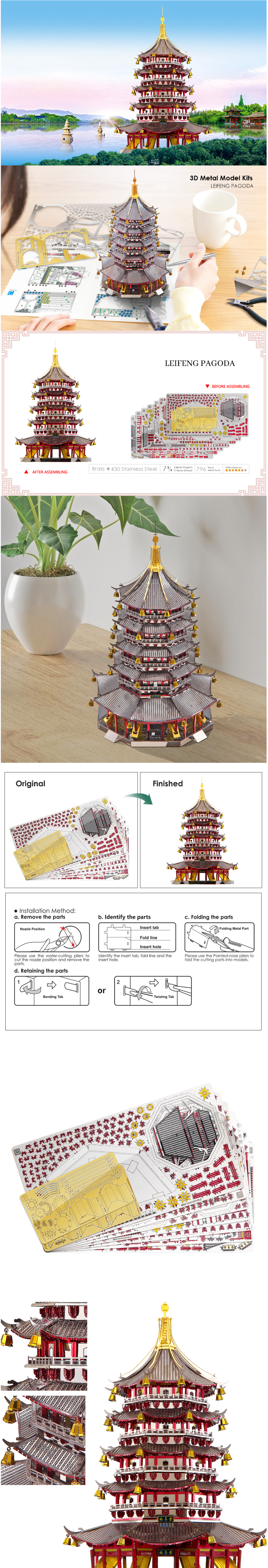 3D Metal Puzzle Model Building Kits,Leifeng Pagoda DIY Assemble Jigsaw Toy ,Christmas Birthday Gifts for Adults Kids