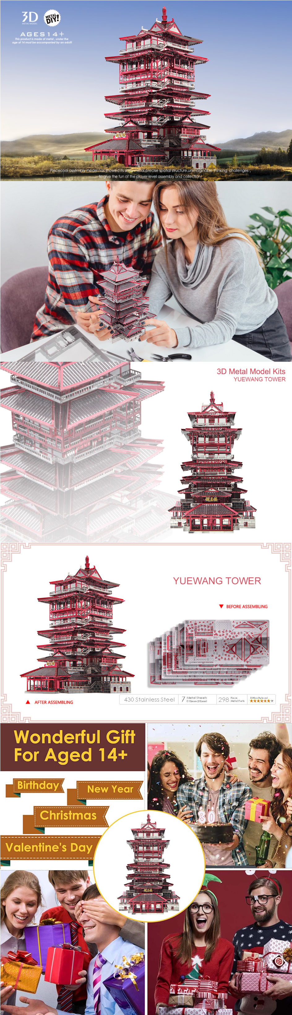 3D Metal Puzzle Model Building Kits - Yuewang Tower Jigsaw Toy ,Christmas Birthday Gifts for Adults Kids
