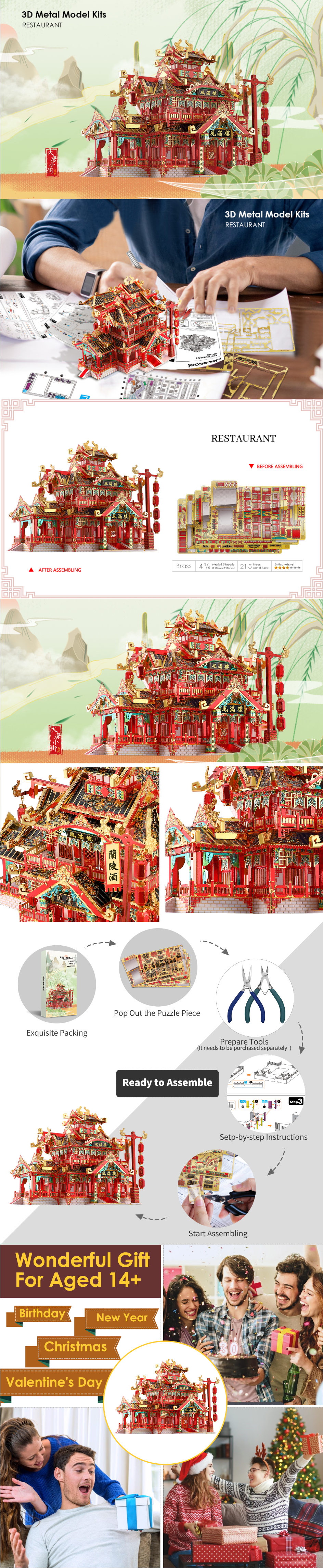 3D Metal Puzzle -Restaurant DIY Assemble Jigsaw Toy ,Model Building Kits Christmas and Birthday Gifts for Adults Kids