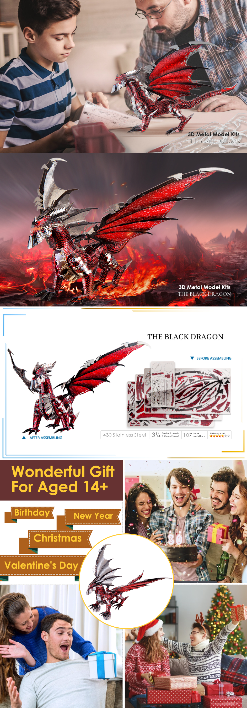 3D Metal Puzzle The Black Dragon DIY Model Kits Assemble Jigsaw Toy Desktop Decoration GIFT For Adult Kids