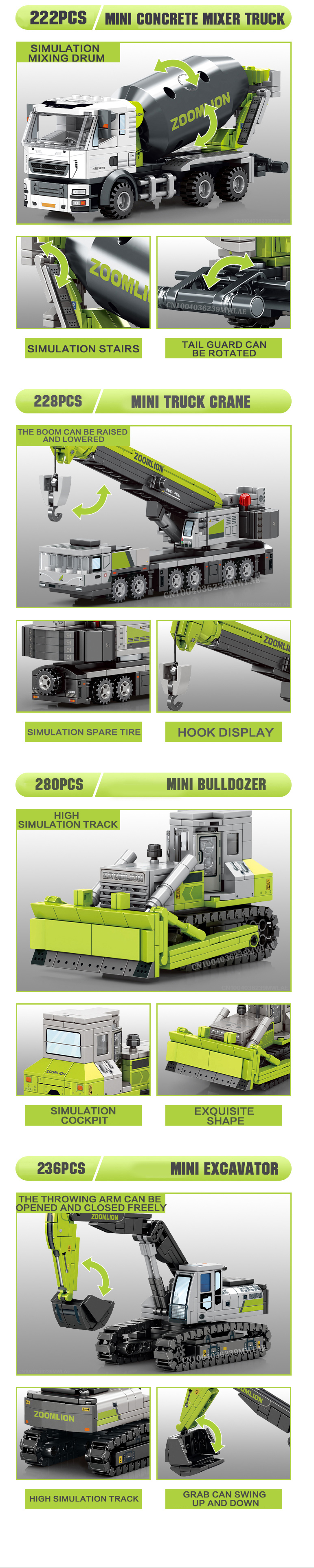 Engineering Construction Building Blocks Excavator Bulldozer Crane Dump Truck Bricks DIY Child Toys Gifts